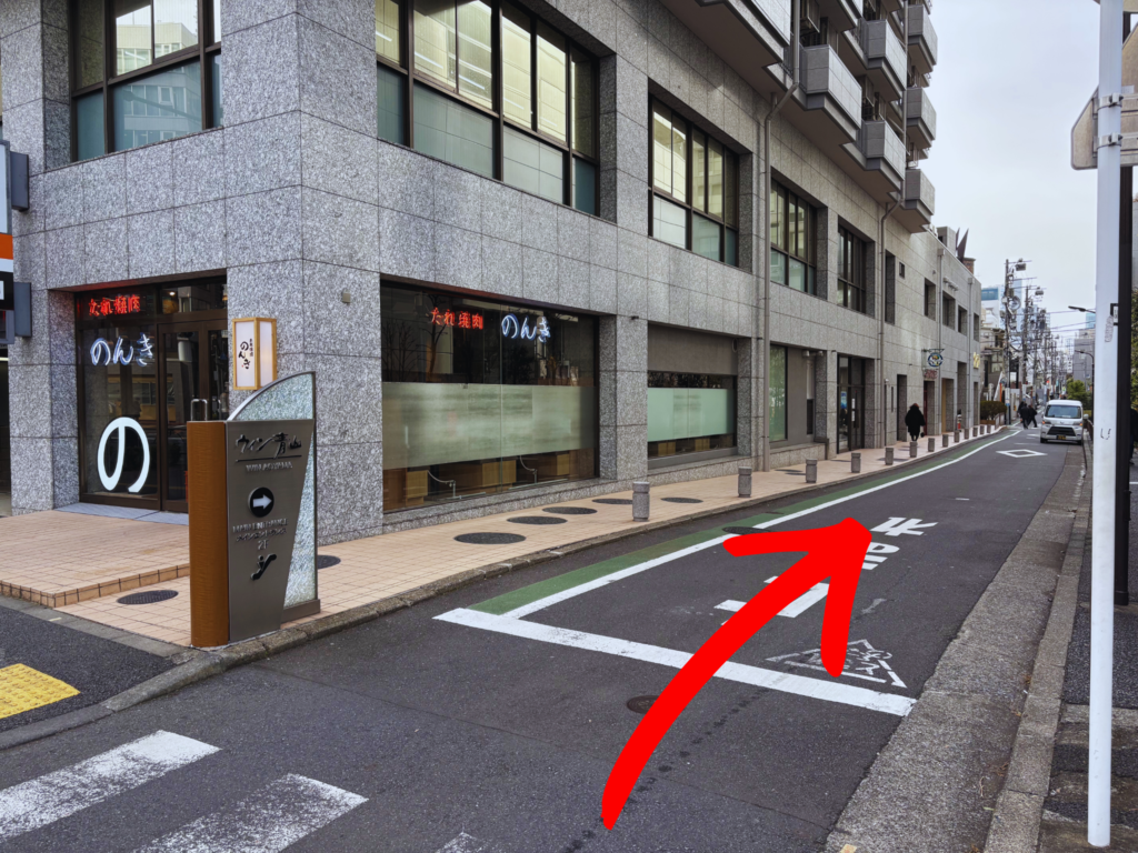 ④ウィン青山の看板が見えたら、入り口に進んでいただくと